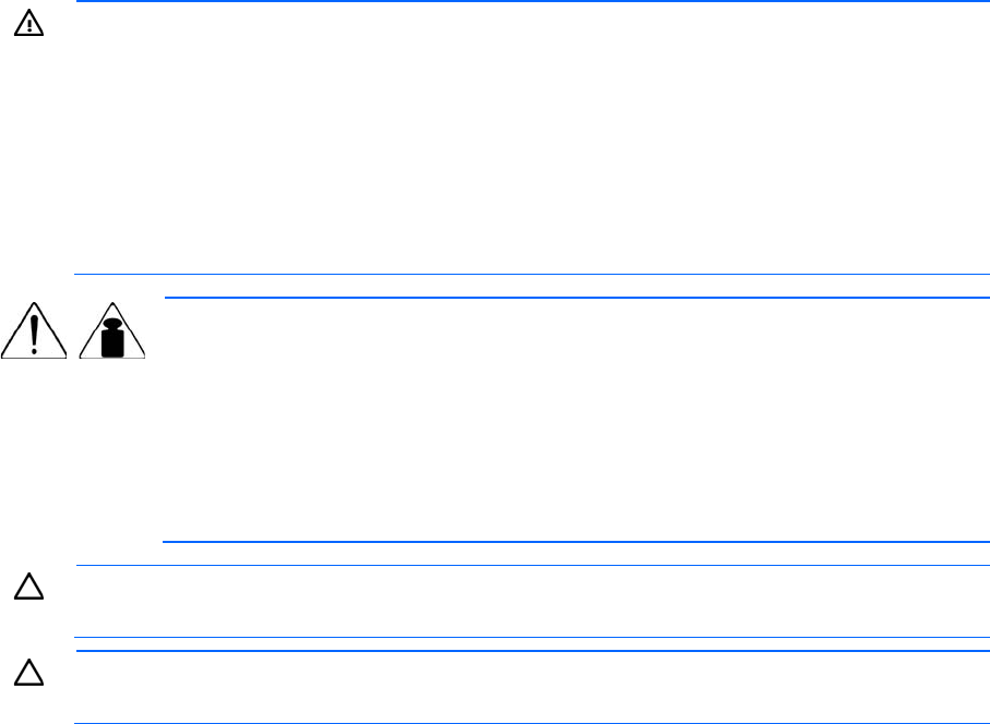 WARNING: To reduce the risk of personal injury or damage to the equipment:
