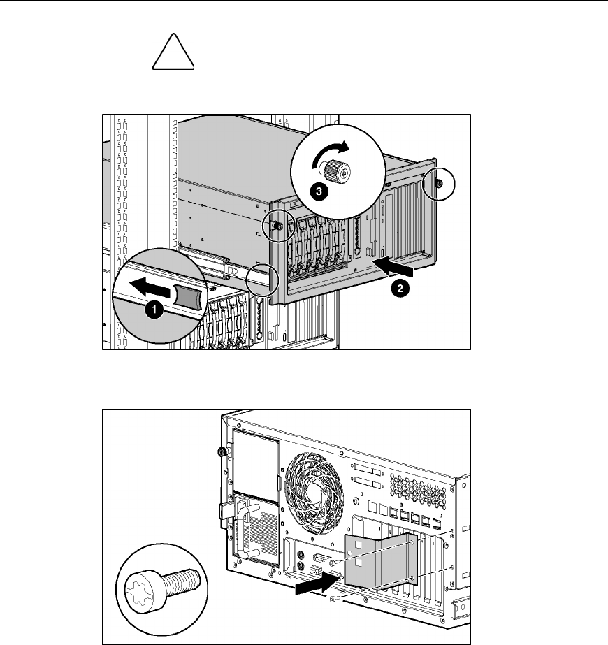 6. Secure the cable management bracket to the rear of the server using a T-15