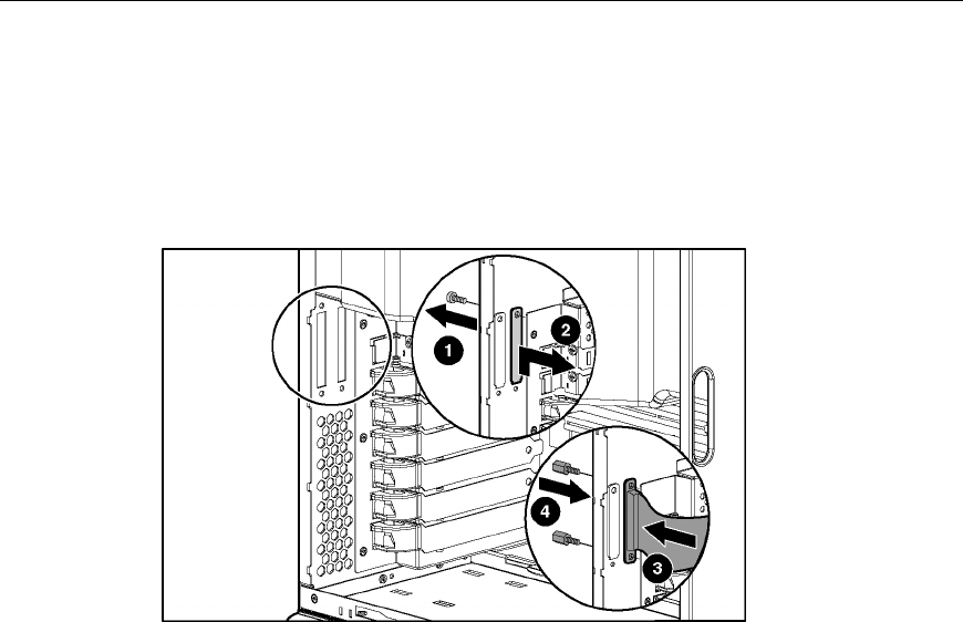 6. Insert the SCSI connector into the open area. Secure the external SCSI