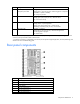 Systems Insight Display LEDs The HP Systems Insight Display LEDs represent the system board layout. Item Description Status 1 Power cap To determine Power cap status, see "Systems Insight Display LED combinations (on page 14)." 2 AMP Status Green = AMP mode enabled Amber = Failover Off = AMP mode disabled 3 DIMM LEDs Amber = DIMM error Off = Normal All other LEDs Amber = Failure Off = Normal IMPORTANT: If more than one DIMM slot LED is illuminated, further troubleshooting is required.