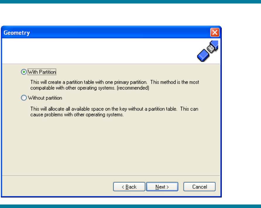 not create a partition. This will allocate all available space on the key without creating a partition.