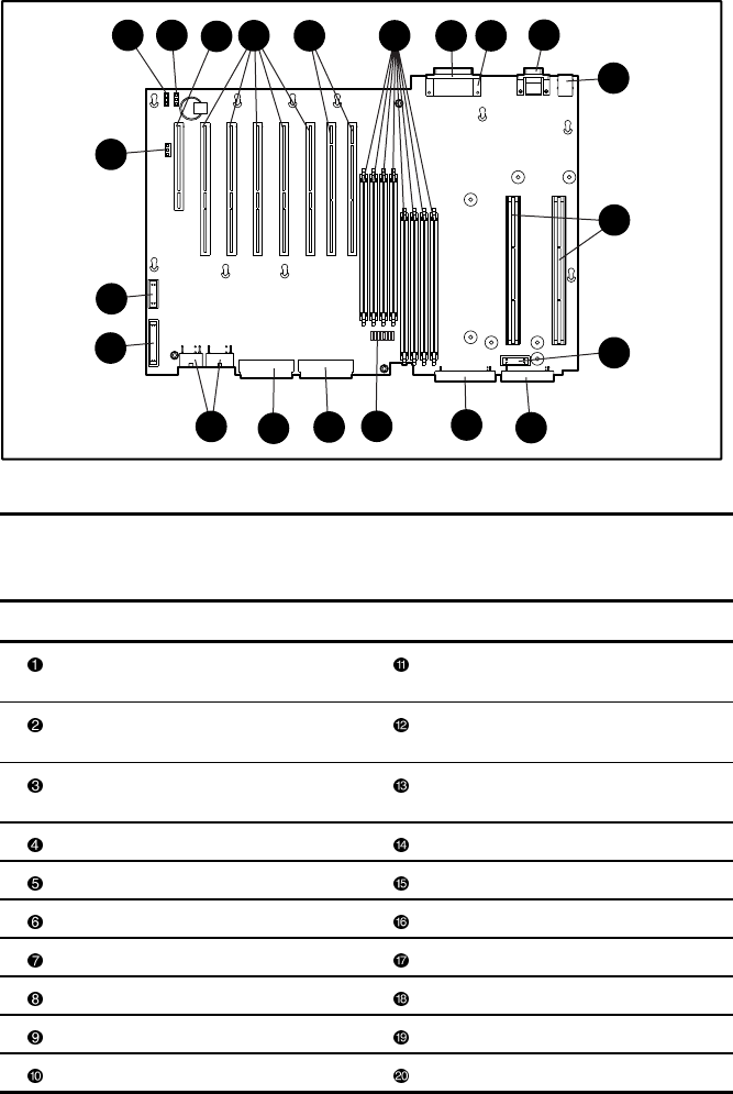 The system board connector locations and descriptions for Compaq ProLiant ML530 servers are