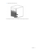 a. Cut the cable tie securing the P6 power cable, and then route the cable along the underside of the media drive bay. b. Connect the data cable to the USB connector on the system board, and then route the cable up and through the cable tunnel on the left side of the media drive bay. 8. Install the RDX drive: a. Remove four spare drive screws from the rear side of the panel door. b. Install the screws onto the drive. c. Connect the data and power cables to the drive.