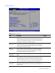 Advanced menu Figure 4 Advanced menu Table 3 Advanced menu fields Field Description Options CPU Configuration You can use this screen to select options for the CPU Configuration Settings. Use the up and down keys to select an item. Use the and keys to change the value of the selected option. A description of the selected item appears on the right side of the screen. The settings are described on the following pages.