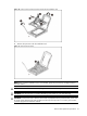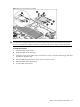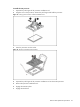 1. Gently rock the air baffle 1 up, and then take it out from the system board.