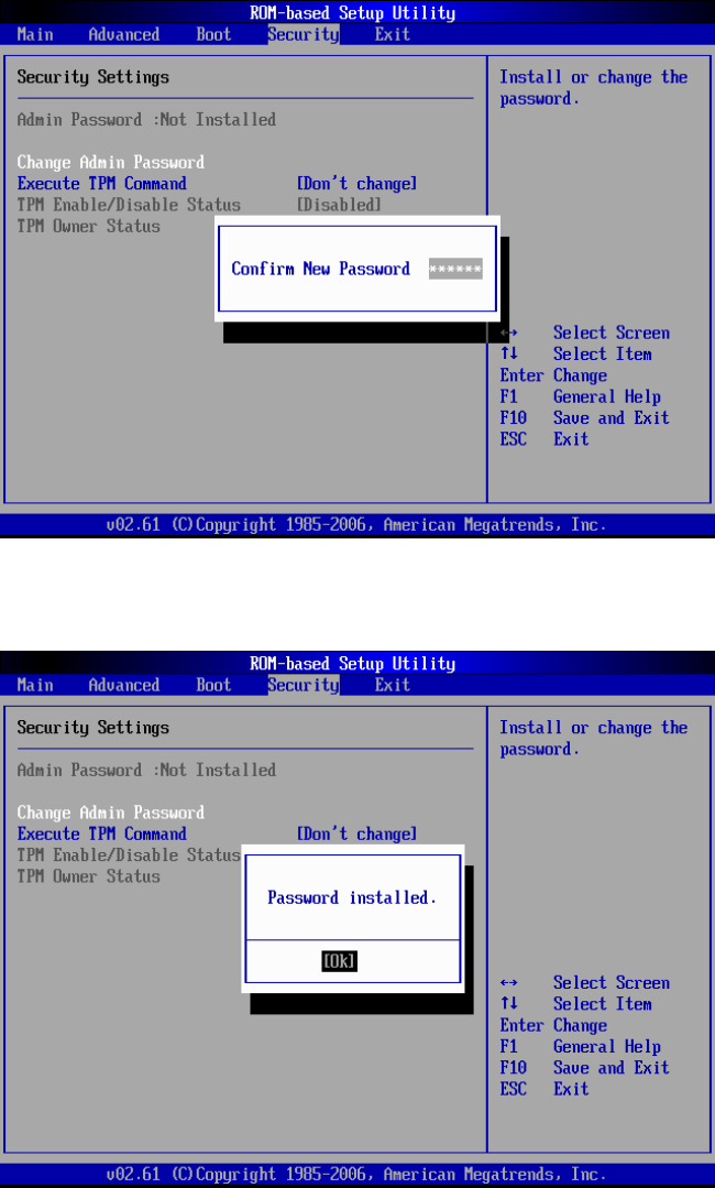 2. Type the same password in the Confirm New Password box to verify the first entry, then press