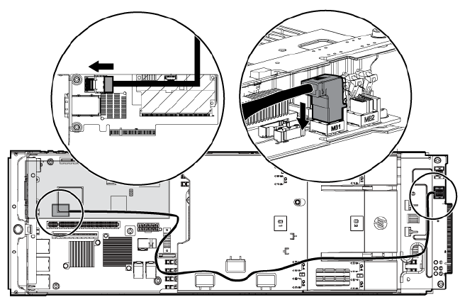 - Installing the Mini-SAS P430 cable in a 2U node