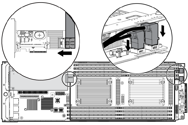- Installing the Mini-SAS P420 SFF cable in a 2U node