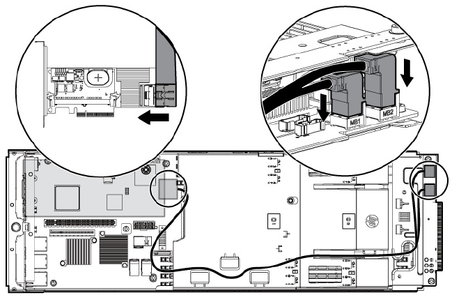 9. Connect the Mini-SAS cable x4 connectors to the P420 Smart Array controller.
