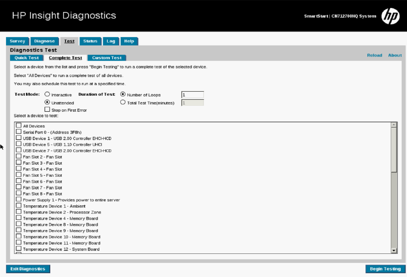 - Starting HP Insight Diagnostics for Linux Online Edition from the HP System Management Homepage