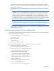 • Ensure your workstation does not have an existing connection to the ADMIN$ share on the target IP address. If it does, it prevents HP SUM from connecting to the remote server’s share because Windows only allows one connection from a client to a server’s share. This can be verified by entering net use at a command prompt. If a share to the target IP address \admin$ share exists, delete it, and then attempt the installation again. • Ensure that the target IP address server’s admin$ share is accessible.