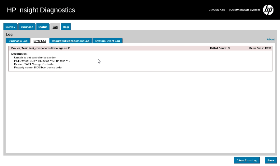 The Integrated Management Log (IML) tab contains system errors discovered during POST and by