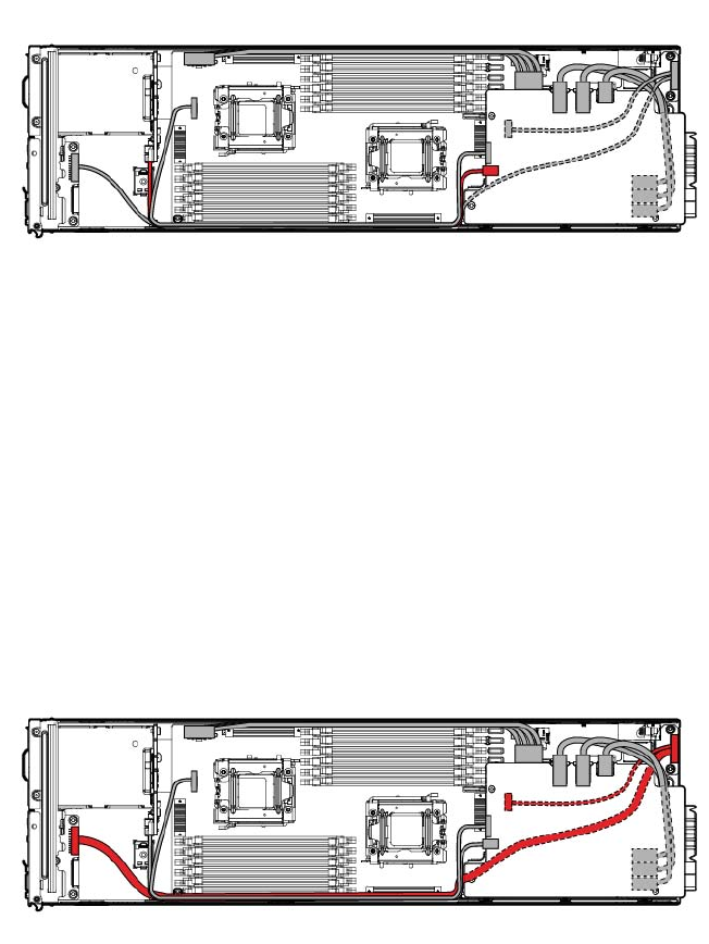 The SATA board power cable routes on top of the RPS cable and front LED cable, and underneath the