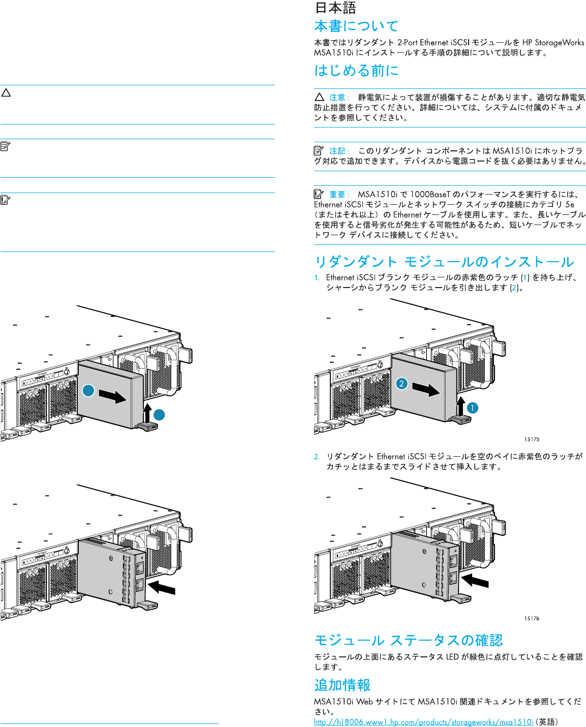 HP StorageWorks Modular Smart Array 1510i 2-Port Ethernet iSCSI module Installation Instructions (February 2006)