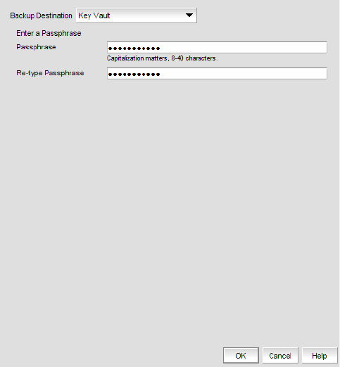 5. Enter the passphrase, which is required for restoring the master key. The passphrase can be