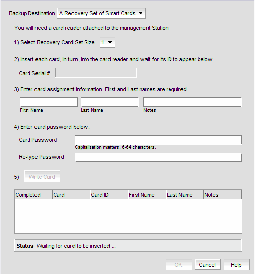 4. Select A Recovery Set of Smart Cards as the Backup Destination.