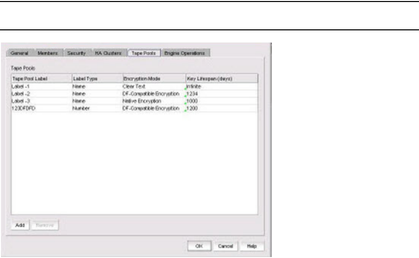 The Tape Pools tab (Figure 82) is viewed from the Encryption Group Properties dialog box. To