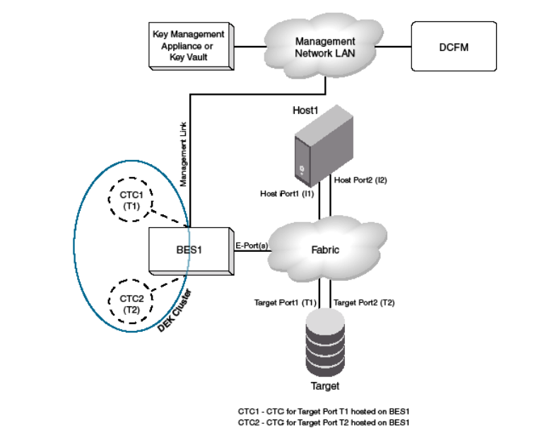 - Single encryption switch, two paths from host to target