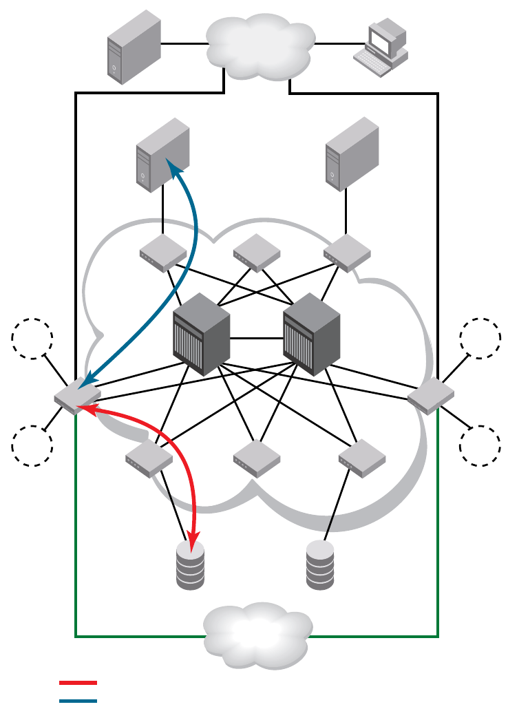 host and target edge switches in a highly redundant core-edge topology.
