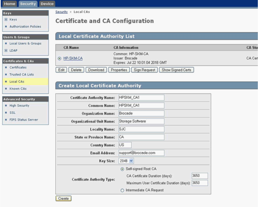 FIGURE 11 Creating an HP ESKM/SKM local CA