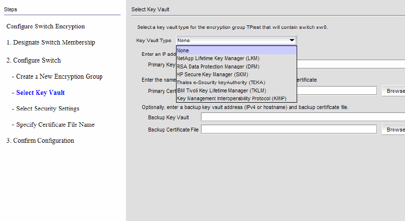 8. Select HP Secure Key Manager (SKM) as the Key Vault Type.