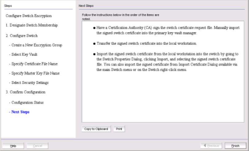 15. Click Finish to exit the Configure Switch Encryption wizard.