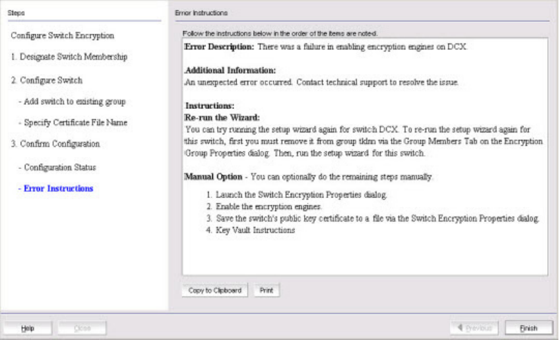 9. Click Finish to exit the Configure Switch Encryption wizard.