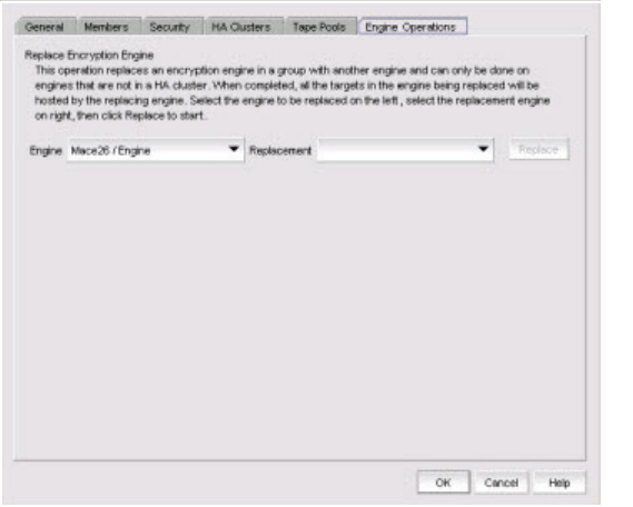 You can also display the Engine Operations tab by selecting an encryption group from the