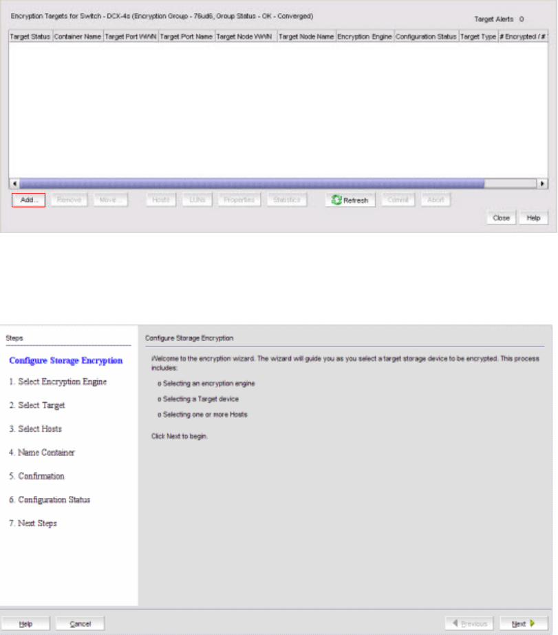 - Adding target tape LUNs for encryption