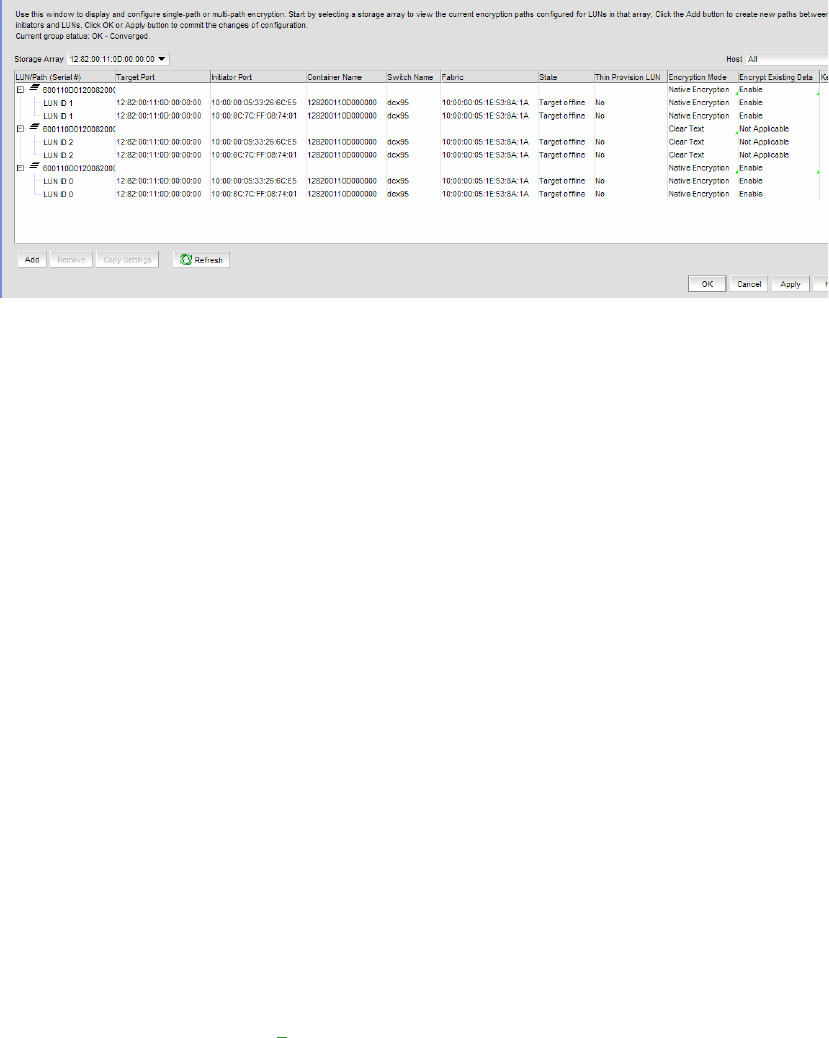 • Encryption path table: Should be LUN/Path identified by the following:
