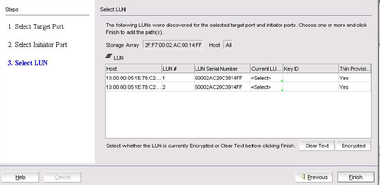 • Storage Array: The Storage Array selected from the LUN view prior to launching the Add