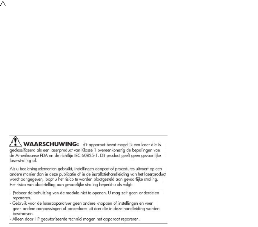 • Do not operate controls, make adjustments, or perform procedures to the laser device other than