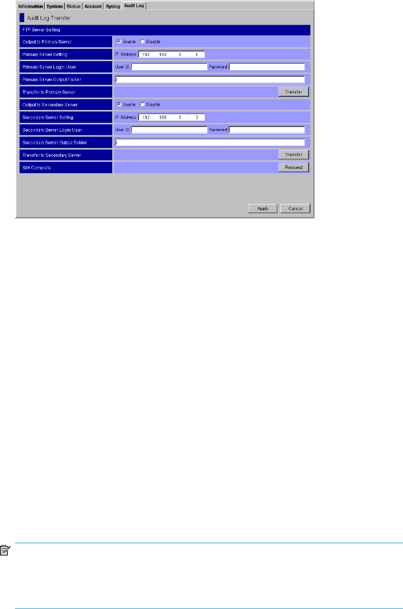 9. Confirm that the FTP server setting is correct, and click Transfer to manually transfer the audit log