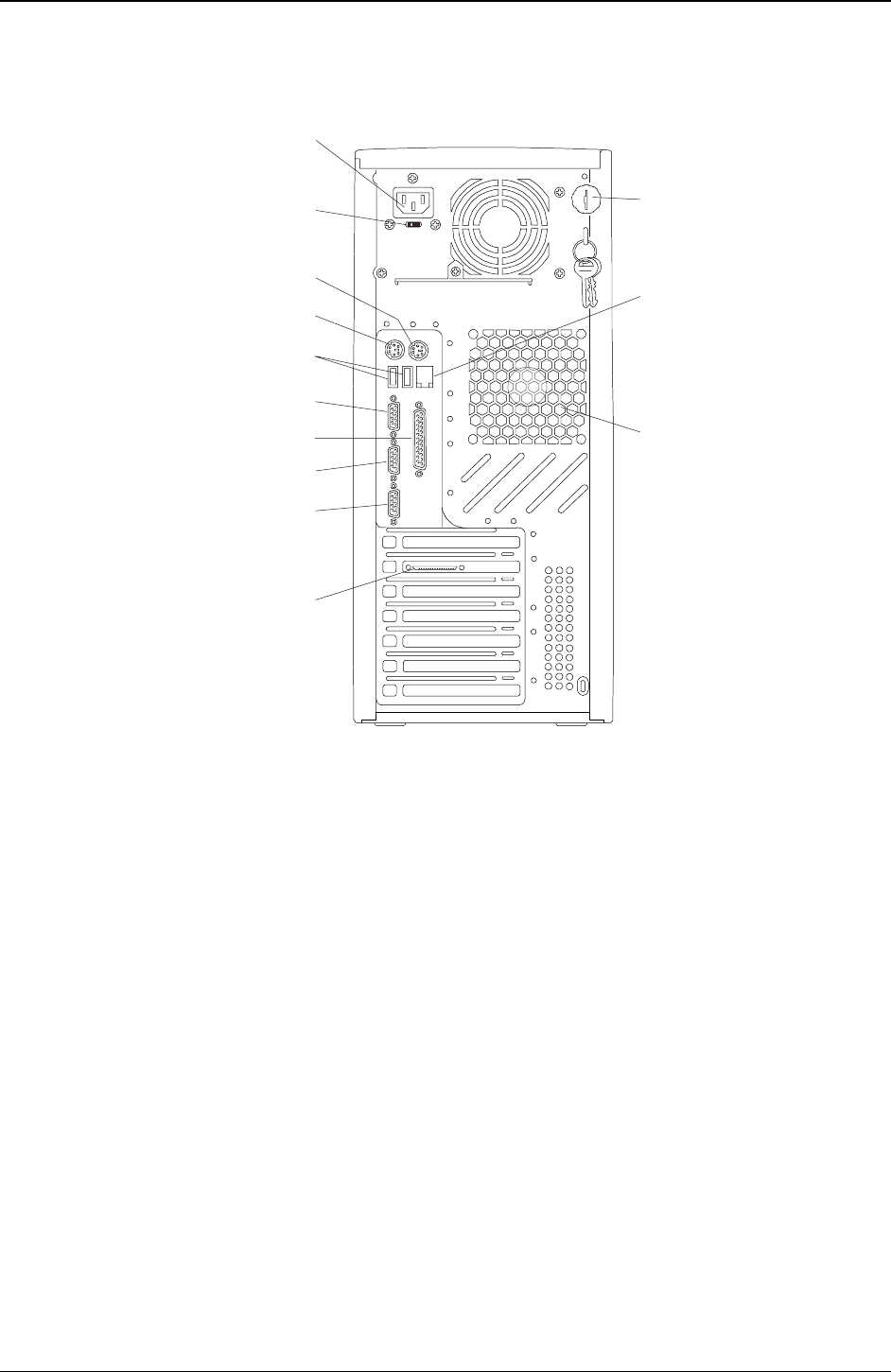 The following text and illustration describe the ports, switches, and unique features on the Server's rear panel.