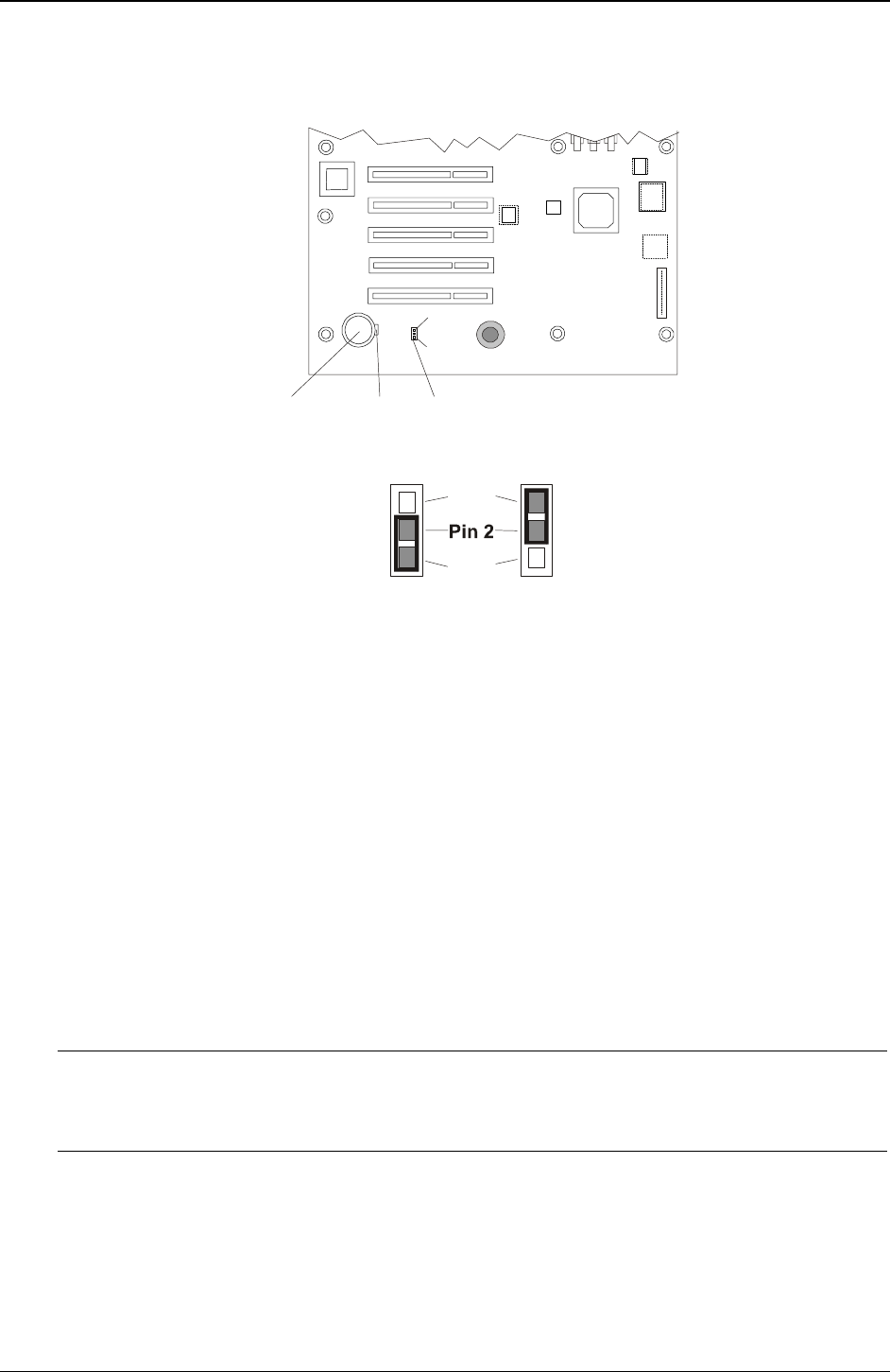 2. Move the jumper from its “Normal” position (Pins 1 & 2) on the system board to the “Clear CMOS”
