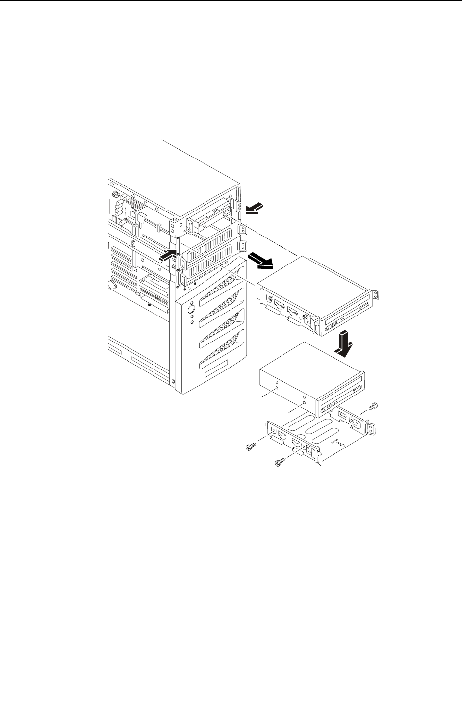 4. Guide the CD-ROM tray into the chassis opening, with the cable connectors of the CD-ROM toward the