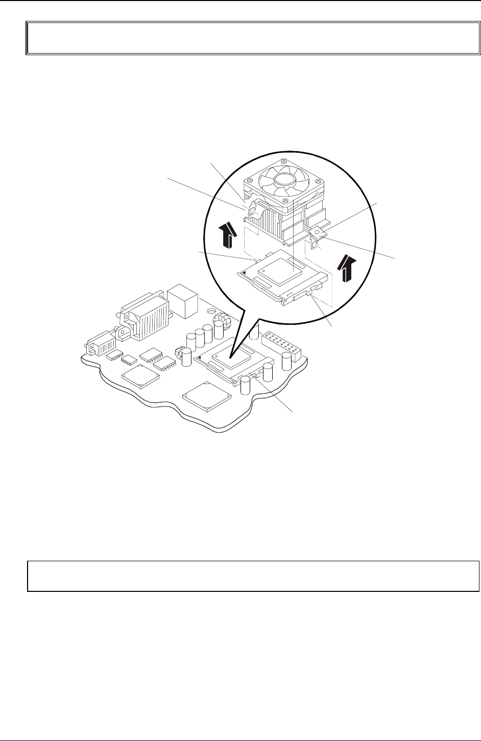 a. Unhooking the thumb latch on the heatsink and lifting the heatsink up slightly from the processor.