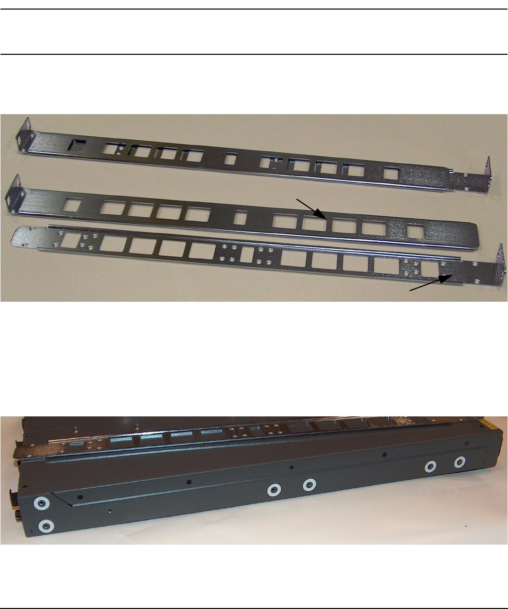 Attach the rail with 6 screws to each side of the switch in the locations shown in Figure 4-3