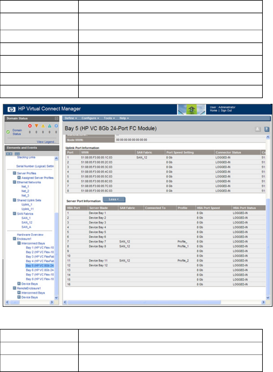 - Interconnect Bay Summary screen (VC-FC Module)