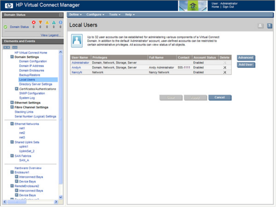 The first time this screen appears, the only local user account is the Administrator account, which has