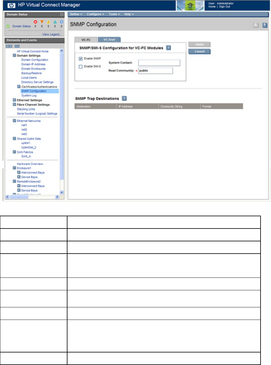 The VC-FC SNMP settings apply to all VC-FC modules in the VC domain.