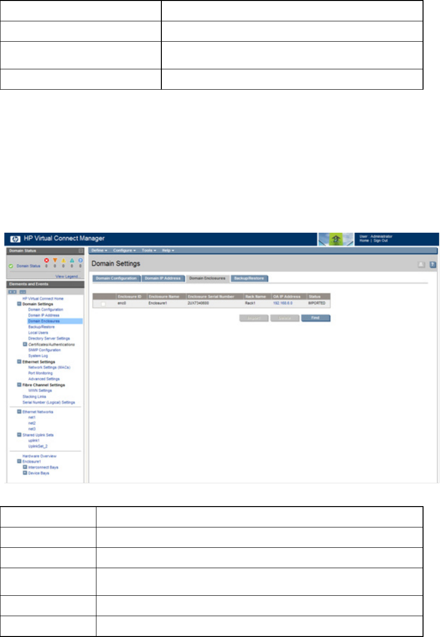 enclosures, see the HP Virtual Connect for c-Class BladeSystem Setup and Installation Guide.