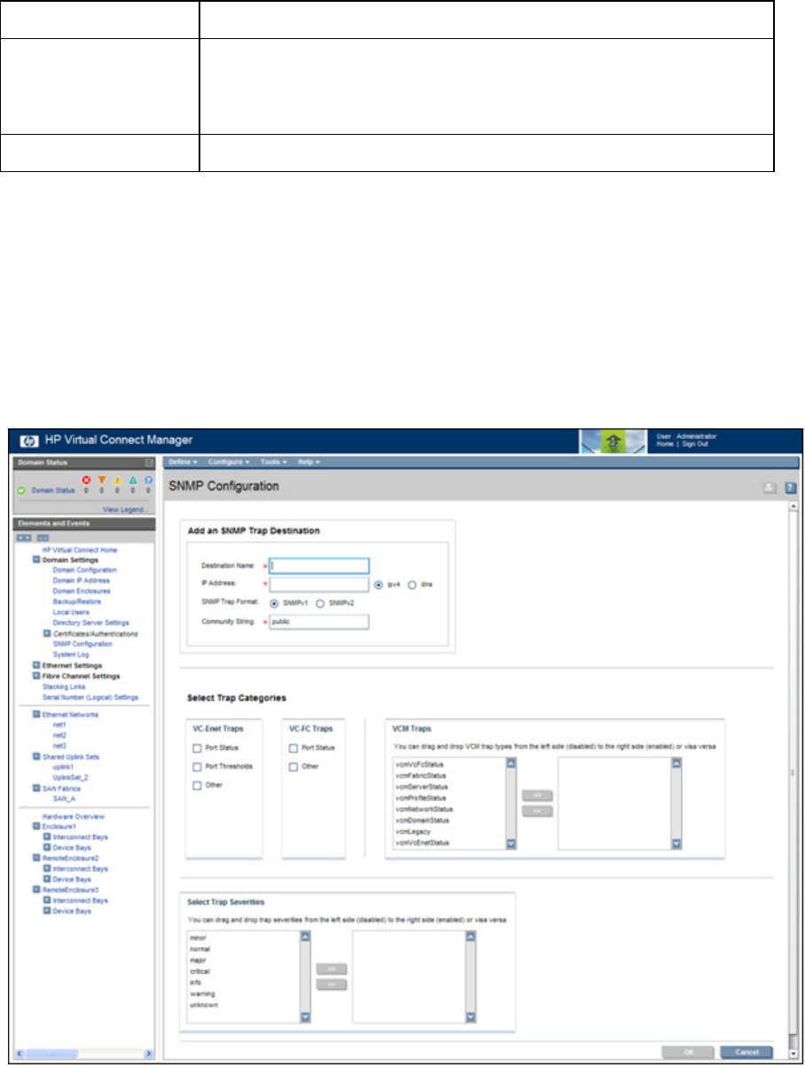 Destination. See "Adding an SNMP trap destination (on page 46)."