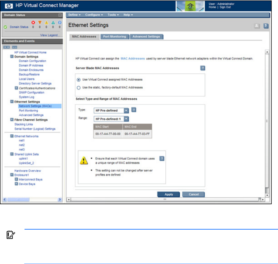 IMPORTANT: Configuring Virtual Connect to assign server blade MAC addresses requires