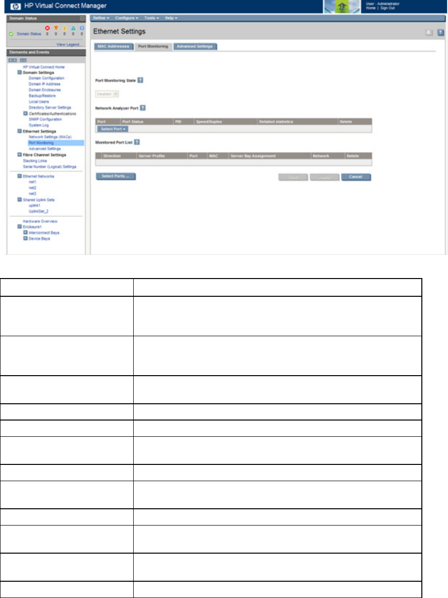 port monitoring is configured and enabled within the Virtual Connect domain, Ethernet data from the