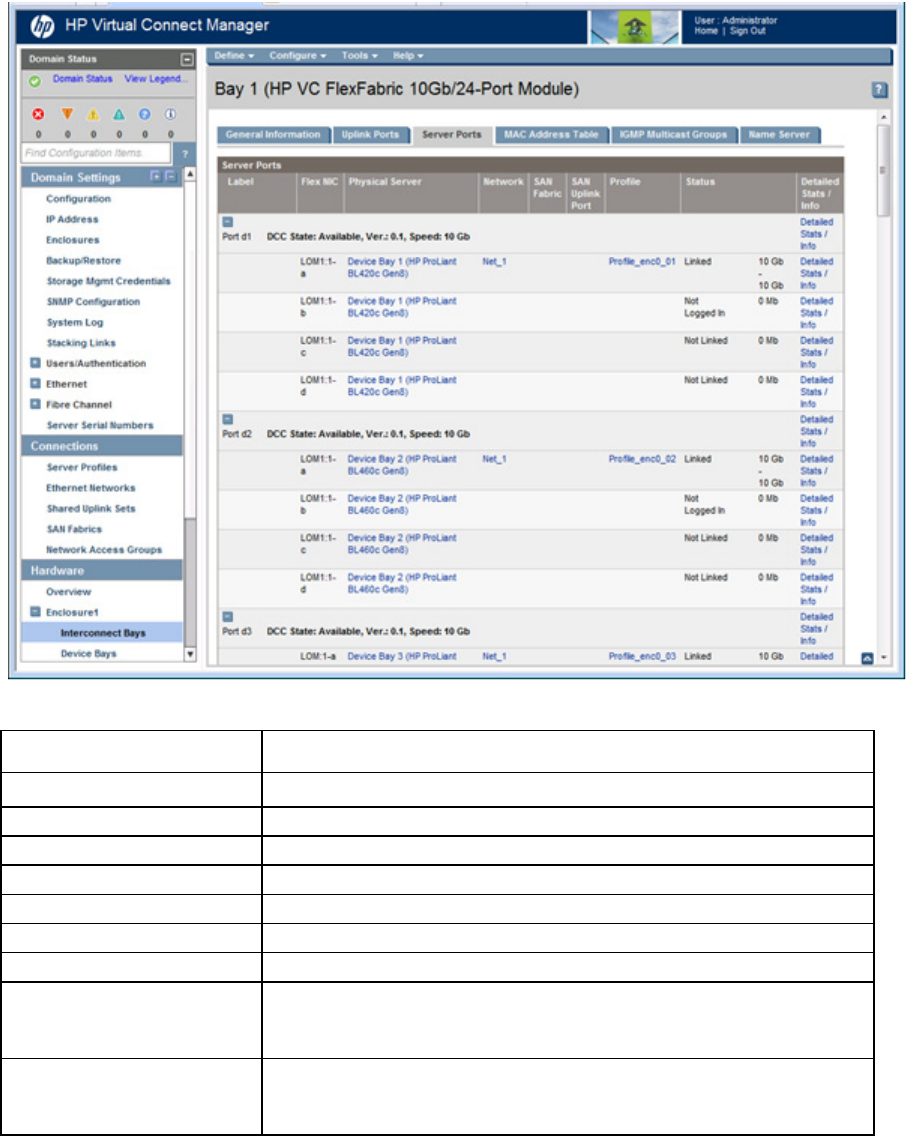This screen provides a summary of the server port information. To remove a module, see "Interconnect