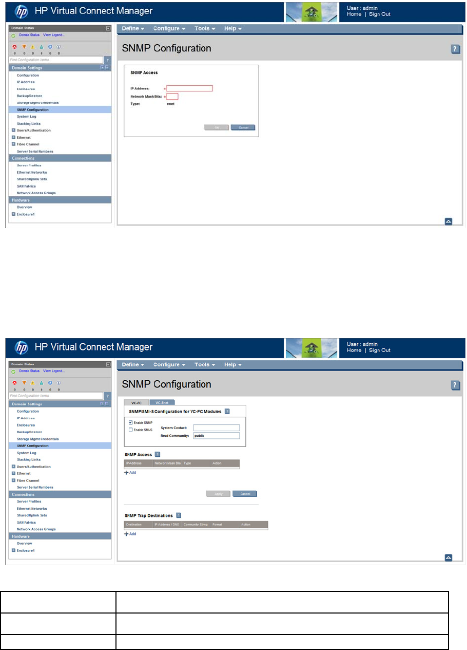 The VC-FC SNMP settings apply to all VC-FC modules in the VC domain.