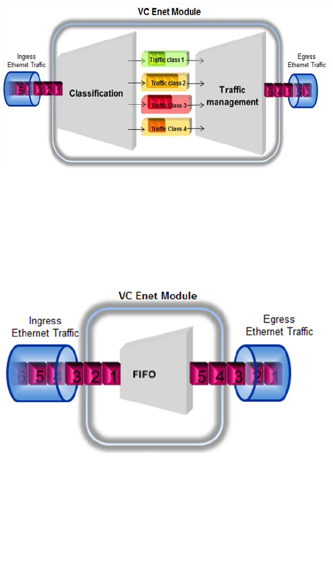 or traffic shaping for Ethernet traffic flows. FCoE traffic is prioritized and classified In FlexFabric modules but