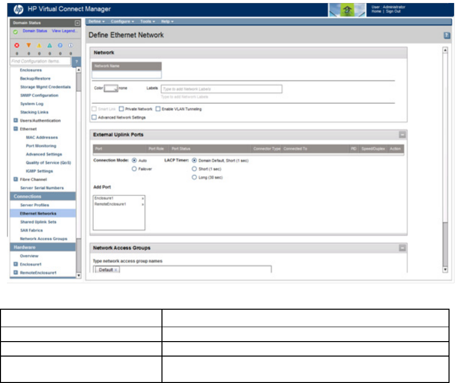 a Network link on the Virtual Connect Manager homepage or the Define pull-down menu.