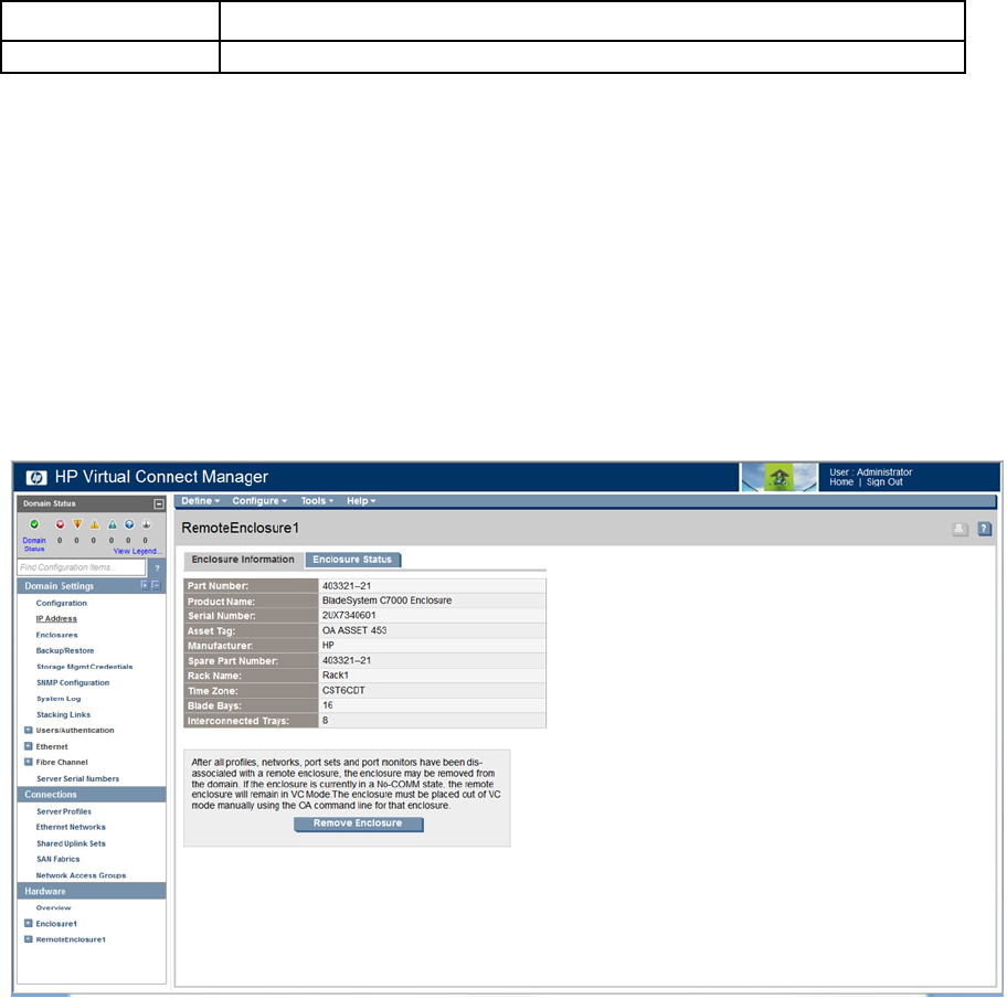 If the enclosure is currently in a No-COMM state, the remote enclosure remains in VC mode. The
